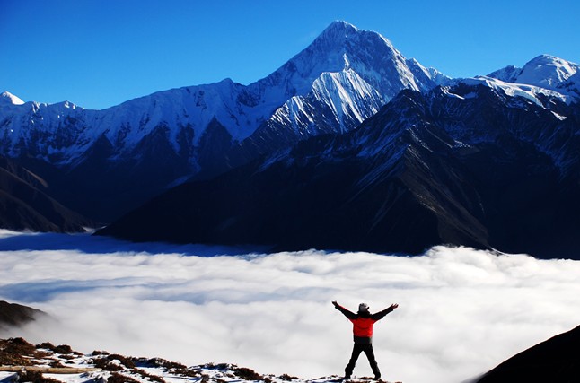 貢嘎山峰的高峻,遠(yuǎn)非內(nèi)地一般名山可比。登臨其上后,放眼望去,萬里銀白的雪域匍匐在山下,遼闊的視野和由山體的高度而產(chǎn)生的登山成就感絕對值得一攀。由于其海拔非一般山峰可比,因此要求登山者作足充分準(zhǔn)備,以免因勞累和寒冷導(dǎo)致半途而廢。登山者多從西北山脊路線登頂,這也是前人總結(jié)下來的經(jīng)驗。