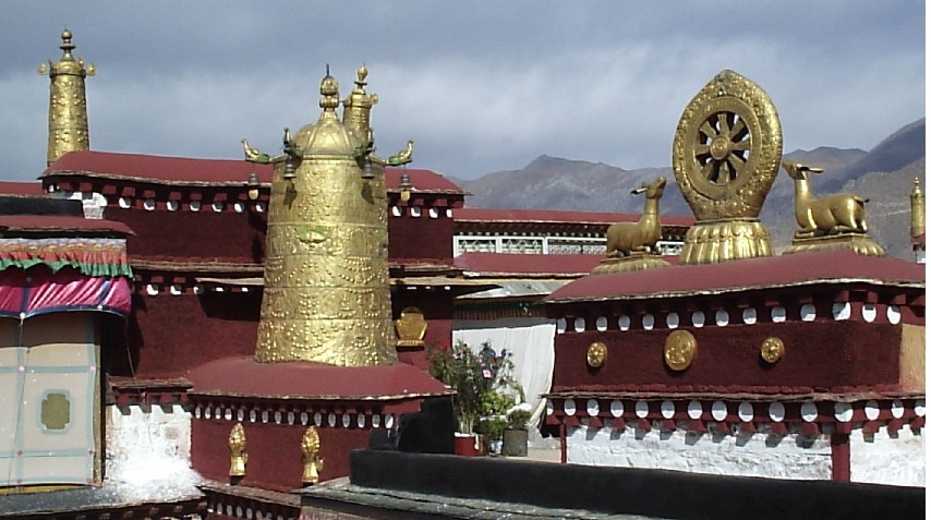 公元641年,“唐王以釋迦佛像,珍寶,金玉書(shū)櫥,三百六十卷經(jīng)典,各種金玉飾物作為(文成)公主的嫁奩。又給……卜筮經(jīng)典三百種,識(shí)別善惡的明簽,營(yíng)造與工技著作六十種,……以車載釋迦佛像,以大隊(duì)騾馬載珍寶、綢帛、衣服及日常必需用具(入吐蕃)。”在文成公主進(jìn)藏之前的公元634年,版權(quán)所有山東聊城聊之旅國(guó)際旅行社有限公司,轉(zhuǎn)載必究!泥婆羅(尼泊爾)國(guó)王鴦?shì)敺ツσ呀?jīng)將其女尺尊公主嫁給松贊干布,尺尊公主入藏時(shí)亦隨帶著一尊釋迦牟尼像,大乘佛教的經(jīng)典著作,各種精巧的工藝品和工匠等等。文成公主進(jìn)藏后不久,就協(xié)助尺尊公主修建了大昭寺,“與此同時(shí),也從中原召來(lái)了很多良工巧匠修建惹謨伽神變寺。