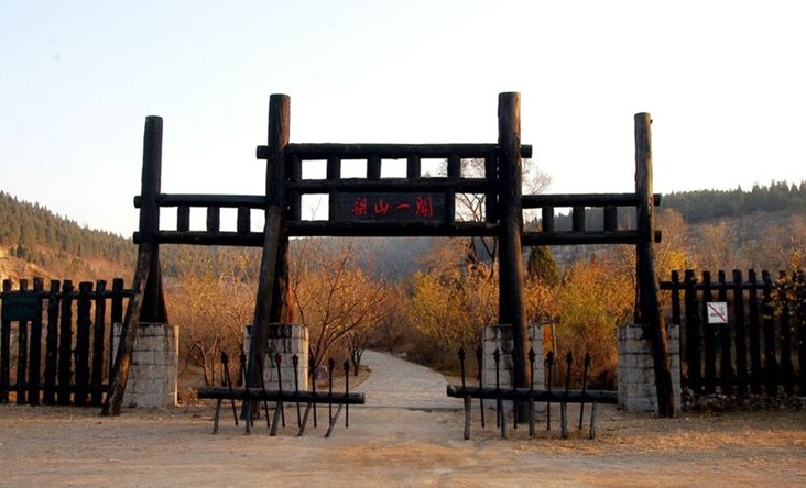 梁山有三關(guān)六寨之說(shuō),梁山一關(guān)為木質(zhì)結(jié)構(gòu),柵欄形式,有濃郁的山寨特 點(diǎn),也是進(jìn)入梁山的第一道屏障,根據(jù)《水滸傳》第七十回描寫,第一關(guān)由解珍、解寶兩頭領(lǐng)駐守在此。壁壘森嚴(yán),雄渾壯觀,后多次遭到破壞,2002年又進(jìn)行了修復(fù)。當(dāng)我們走進(jìn)這條雜草陳槐,曲折逶迤的古寨道,就會(huì)從這荒野的氣息中,領(lǐng)略出當(dāng)年好漢嘯聚山林,八方共域,異姓一家,豪放不羈,快活灑脫的綠林生活情景。