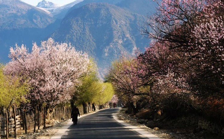 在林芝縣城東南方向約5公里處,有一片天然野生桃林,人們稱它為桃花溝。桃花溝三面環(huán)山,高處有水源,四周林木蔥蘢,終年碧綠蒼翠,間有流水,清澈見底;溝內(nèi)野桃鱗次櫛比,林間鳥雀歡噪,既靜僻又幽雅,不失為一處難得的大自然樂園和桃的砧木基地。
