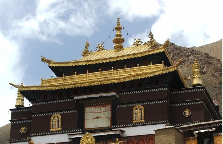 度母殿位于寺院經(jīng)堂后面三座佛殿東側(cè),三座佛殿中居中的是釋迦牟尼殿,西側(cè)是彌勒殿;釋迦殿內(nèi)供5米多高的釋迦牟 尼鎏金銅像,據(jù)說像體內(nèi)有釋迦舍利,還有宗咯巴的頭發(fā)以及根珠巴的經(jīng)師西繞森格的頭蓋骨。度母殿藏語稱卓瑪康,供2米高的白度母銅像,兩旁還有泥塑的綠度母像。