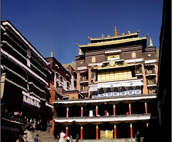 于公元1615年由多羅那他主持修建。原信奉覺(jué)朗派,到五世達(dá)賴?yán)飯?zhí)政時(shí)期,該寺屬13座寺廟換教寺之一,故信奉格魯派。寺院曾有35個(gè)殿堂和一個(gè)誦經(jīng)大殿,3300名僧人,并在寺廟的山頂處修建了94間高9層的達(dá)耶拉塔臥室。寺內(nèi)保存有大量珍貴的老壁畫(huà)和鍍金銅佛像,如生威金剛、時(shí)輪金剛、勝樂(lè)金剛等164件。版權(quán)所有山東聊城聊之旅國(guó)際旅行社有限公司,轉(zhuǎn)載必究!還珍藏著四大寶:一是土布瓦?喜繞堅(jiān)贊的拐杖,約1米長(zhǎng);二是達(dá)耶拉塔的手杖,據(jù)說(shuō)是蒙古人所贈(zèng),手杖上雕刻有蒙文、藏文、龍等,約1.2米長(zhǎng);三是多羅那他的法鈸,相傳聞其聲便能解脫苦海;四是一對(duì)寶石,一個(gè)形如雞蛋,呈白色,上面有天然形成的咒語(yǔ)和雍仲圖案,另一個(gè)形如杏仁,上有一道白線。