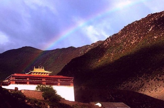 雍布拉康位于澤當(dāng)11公里的扎西次日山上。“雍布”意為“母鹿”,因扎西次山形似母鹿而得名,“拉康”意為“神殿”。雍布拉康是西藏歷史上第一座宮殿。據(jù)史書記載始建于公元前二世紀(jì)。松贊干布暑期由宮殿改作寺廟。文成公主初來西藏時(shí)每到夏季都會(huì)和松贊干布來這里居住。至五世達(dá)賴時(shí)又在原碉樓式建筑基礎(chǔ)上修了四角攢尖式金頂,并將其改為黃教寺院。