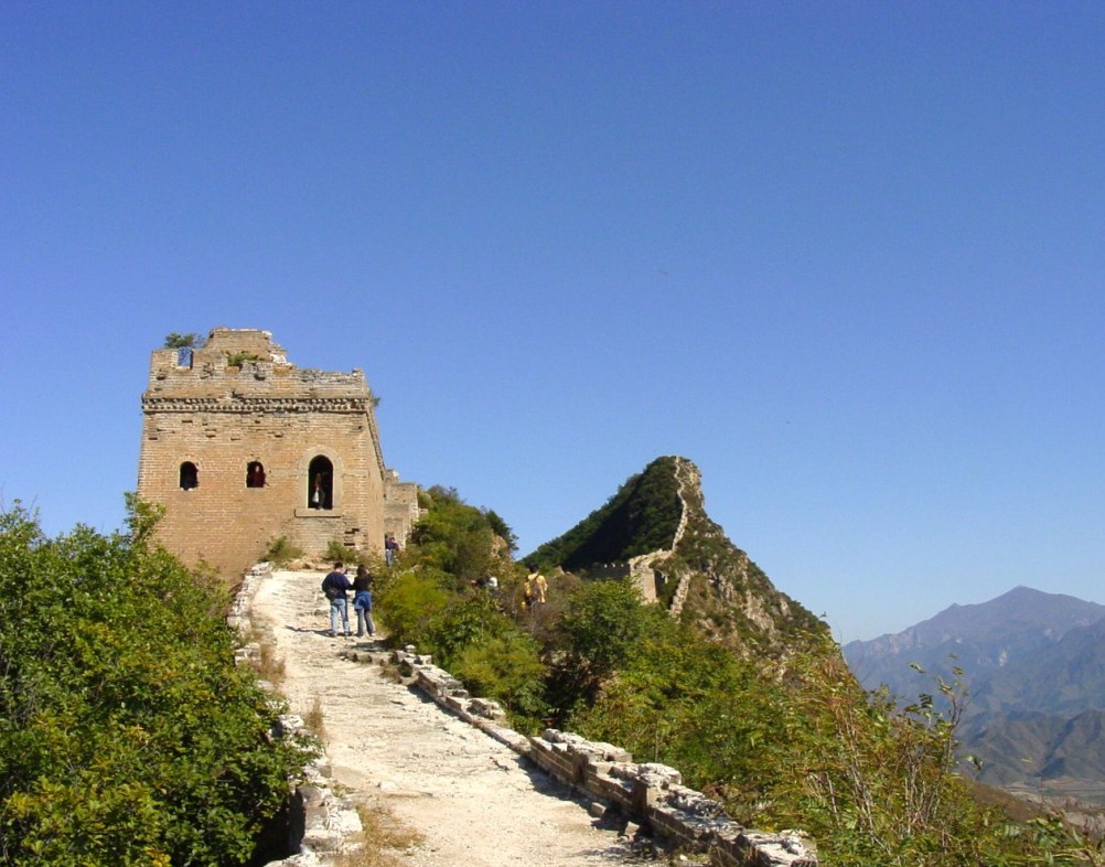 長城的最高處為“仙女樓”,需登“天梯”而上。天梯高達100米,坡度85度,幾近垂直,無膽量的絕難征服。仰頭上望,那磚石砌就的臺階僅可容腳,兩側(cè)懸崖陡壁,中間這一道臺階細如線,薄如刃,陡如立,不由人望梯興嘆,倒吸一口涼氣。爬上仙女樓,景色果然更加壯美秀麗,俯首看腳下的懸崖,刀削斧劈一般,幾縷霧嵐掛在絕壁處,更顯得陡峭驚險。西北邊金山嶺長城與司馬臺長城渾然一體,活象一條即將騰飛的蒼龍。長城上大小不同、形態(tài)各異的敵樓,恰到好處地建立在各個制高點上,威風凜然,冷峻挺拔。整段長城,完美和諧,氣勢磅礴,處處顯示出她的巧妙、奇特、雄偉和壯麗。再看看連綿不斷的燕山山脈奔涌而起,疊起無數(shù)的奇幻;看看遼闊的華北平原無邊無際,一直鋪向目不所及的天邊,在這博大奇異的景色中,令人不由浮想聯(lián)翩。