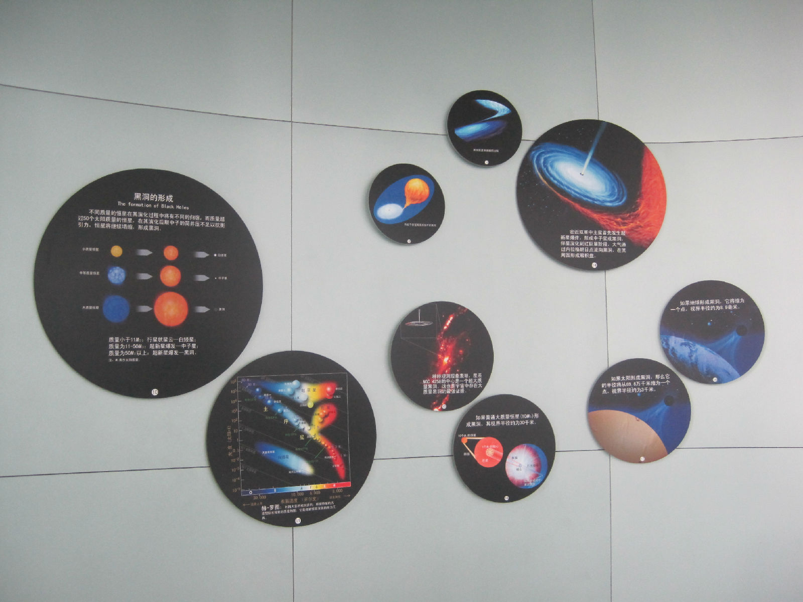 太陽展示廳,展覽面積300米,以展出太陽和太陽系內(nèi)容為主。主要展項內(nèi)容有從太陽真空望遠(yuǎn)鏡觀測接收而來的1.8米太陽白光投影像;174毫米手描太陽黑子白光全日面投影像;艷麗多彩的太陽光譜投影像;太陽白光、太陽色球全日面和太陽局部活動區(qū)的CCD電視圖象等。北京天文館設(shè)施包括天象廳,門廳,展覽廳,報告廳,天文臺等。北京天文館是中國乃至亞洲大陸的第一座大型天文館,目前仍是大陸唯一的大型專業(yè)天文館。2004年12月12日,北京天文館新館落成,設(shè)施包括數(shù)字宇宙劇場,3D影院 ,4D影院,太陽展廳等。