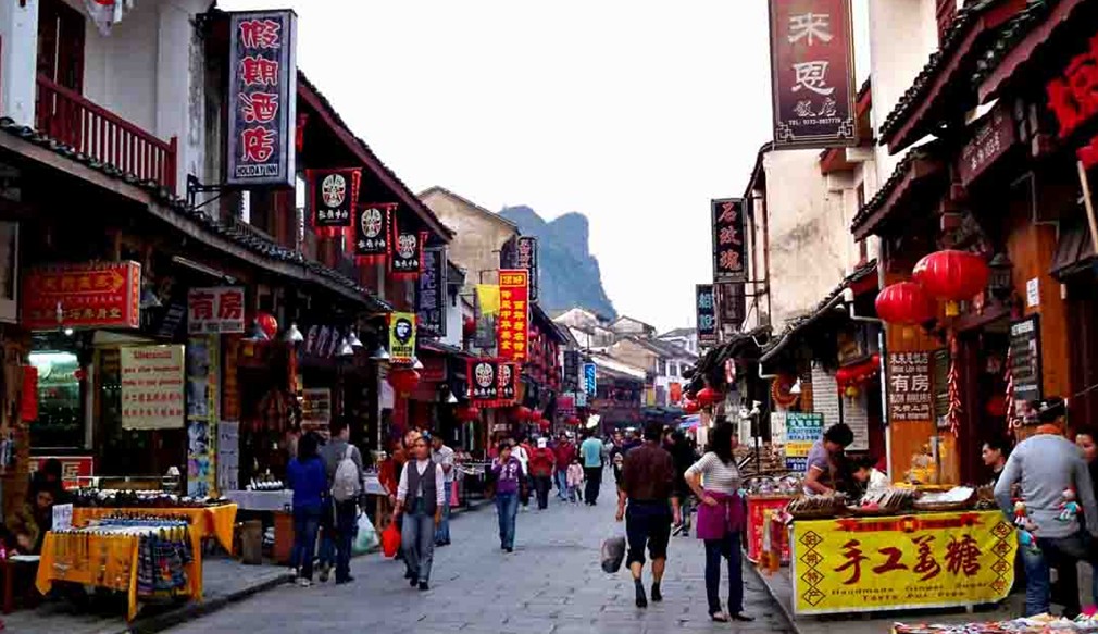 陽朔不僅田園風(fēng)光如詩如畫,文化遺產(chǎn)也十分豐富,古建筑、古橋梁、名人紀(jì)念地摩崖石刻等,點(diǎn)綴于山水間。最有名的要數(shù)陽朔古老的石板街--西街,街中有眾多的工藝品店、書畫店、旅館、咖啡廳、酒吧、中國功夫館,這里也是洋人聚集最多的地方,其中外國人在此開店就有20多家,被稱為洋人街。由于西街男女老少都能說外語,故又把西街喻為"地球村",而且是中外新聞媒體關(guān)注的熱點(diǎn),每年接待的中外游客達(dá)150萬人次之多。總之,處處是景的自然風(fēng)光,古樸清秀的田園景致,驚絕天下的溶巖奇觀,難以忘懷的“洋人”西街,陽朔之行絕對(duì)讓你別有一番驚喜!