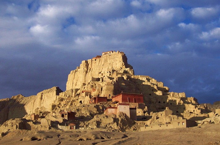 扎達土林位于這片土林的邊緣,象泉河谷的南側(cè)。日落時分,寂寥的村落與大地共融一色,仿佛昭示著世界亙古如斯般平靜。然而,在距今大約1100年前,同樣的金色余暉中,佇立著的卻是強盛一時的古格王國的輝煌宮殿和宏偉寺院。從現(xiàn)存的殘頹遺址可以想見,當(dāng)時氣象之盛,場面之巨,遠非眼前這般光景可比。札不讓,從一個巍峨的都城到寂寂無名的小村地名的嬗變,多少令人在感嘆天地造化土林之功以后,又嘆世事滄桑之巨變。
