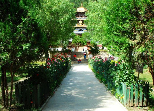 喇嘛嶺寺位于西藏林芝地區(qū)所在地八一鎮(zhèn)東南三十公里處的森林包圍的山坳里。喇嘛嶺寺的金頂與翠綠的松柏交相輝映。寺院經(jīng)堂和僧舍四周,各種顏色的菊花、格桑花爭(zhēng)相斗艷,鐃跋聲、鈴鼓聲以及渾厚而又清脆的誦經(jīng)聲回蕩在山谷。這座建于上個(gè)世紀(jì)三十年代末的古剎,屬藏傳佛教四大教派之一的寧瑪派(俗稱紅教)寺廟。