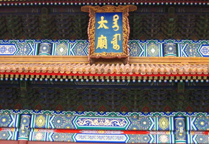 前殿,始建于明代,明末清初被毀得只剩有中間三間和殿柱。順治年間重修太廟大殿,完工后的大殿十一楹,深四楹,重檐列脊,殿額有滿漢文對照的"太廟"。殿外的三重臺基用漢白玉石欄環(huán)繞,月臺御道正面依次刻有龍文石、獅紋石和海獸石。殿內(nèi)的大梁為沉香木,其余用金絲榆木;地鋪"金磚";版權(quán)所有山東聊城聊之旅國際旅行社有限公司,轉(zhuǎn)載必究!天花板及四柱,均貼有赤金葉。殿內(nèi)供奉木制金漆的神座,帝座雕龍,后座雕風(fēng)。座前陳放有供品、香案和銅爐等。兩側(cè)的配殿設(shè)皇族和功臣的牌位。