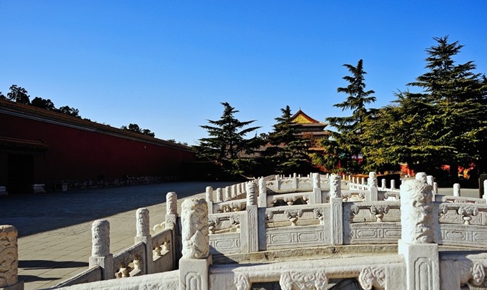 北京故宮紫禁城前出端門往東,經(jīng)太廟街門進(jìn)入太廟區(qū)。此區(qū)于太廟垣墻外滿布古柏。用常綠樹叢造成肅穆氣氛,是古代建筑綠化的成功經(jīng)驗(yàn)。進(jìn)入太廟戟門,則庭院空敞,與垣外適成對比。