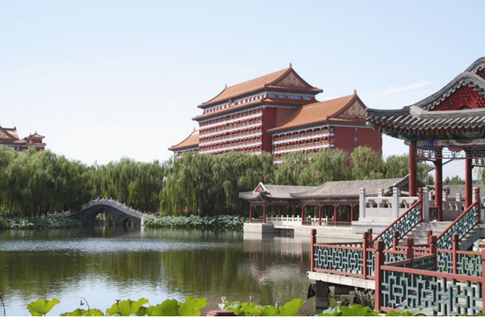 它外仿明清時期北京都城的城垣風(fēng)貌,采用“縮地不縮景”的方式,按照1:1的比例復(fù)原了老北京“內(nèi)九外七”的城垣格局。由周邊5公里的空腹城墻、22座錯落有致的城樓、具有濃郁中國傳統(tǒng)文化風(fēng)格的建筑群和獨(dú)具匠心的皇家園林組成的景園內(nèi),建有設(shè)施完備的大型現(xiàn)代化國際會展中心、五座建筑風(fēng)格各異的星級酒店;外城東區(qū)為圓明勝景區(qū),樓、臺、亭、榭體現(xiàn)了中式皇家園林的風(fēng)范;外城西區(qū)以王府、四合院為代表的古城春色區(qū)盡顯六朝古都的宅府風(fēng)貌;前門商業(yè)街坐落在兩區(qū)之間,崇文門的西部為康體健身中心;宣武門被大型的嬉水樂園所簇?fù)恚还派畔愕恼矊m大酒店是第一城的標(biāo)志性建筑。中華佛教藝術(shù)博物院、金色藝術(shù)大廳、高爾夫草坪式花園構(gòu)成了第一城千姿百態(tài)的多種畫卷。版權(quán)所有山東聊城聊之旅國際旅行社有限公司,轉(zhuǎn)載必究!整體風(fēng)格盡現(xiàn)華夏古今文化之精華、神州民族建筑之異彩,是傳統(tǒng)美學(xué)與現(xiàn)代建筑技術(shù)的完美結(jié)合。