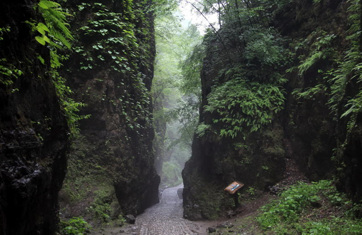 步入景區(qū),造型逼真的“仙官”會將游人引進蝎子溝,此溝長25華里,因溝中遍生蝎子草而得名。該草形如幼桑,如肌膚觸動其葉,頓覺疼痛難忍,但少時即愈。蝎子溝內(nèi)有“一線天”、“龍?zhí)队吃?rdquo;、“摩耳崖”等奇景,令人嘆為觀止。