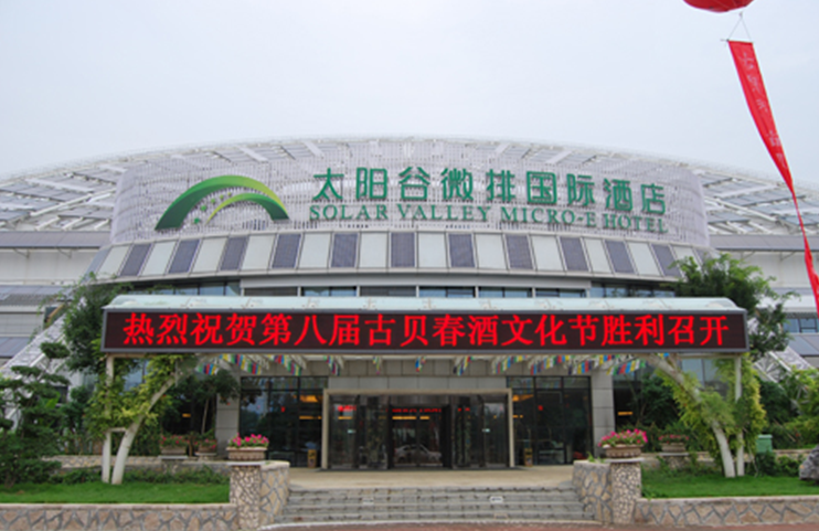中國太陽谷是2010年世界太陽城大會的舉辦地,大會主會場——日月潭微排國際酒店(簡稱日月壇)是中國太陽谷標(biāo)志性建筑,由皇明集團投資興建,是目前世界上最大的太陽能建筑,總建筑面積約7.5萬平方米。 2008年9月1日,皇明太陽能集團總部搬遷至日月壇。