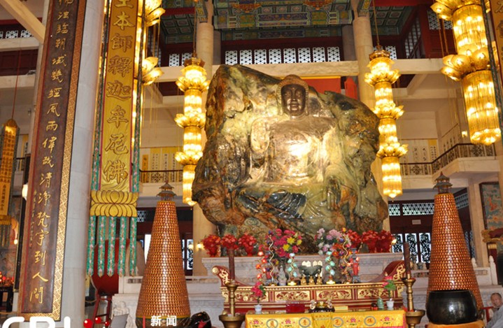 在觀音一側(cè),鰲魚擺尾,把幾縷淡黃色的魚尾紋狀的玉石拋向上方。來自武漢的德修禪師悟出這淡黃色的玉石構(gòu)成了隸書體的“真”字。版權(quán)所有山東聊城聊之旅國際旅行社有限公司,轉(zhuǎn)載必究!大師臨行前,題寫了“洪大悟真”四個(gè)字,旨在告訴人們:玉佛上出現(xiàn)的奇跡都是真的,讓人們用心去悟徹佛法的真諦。
