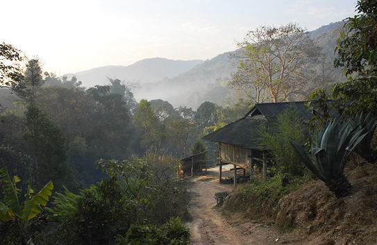 基諾族的山寨,多建于山頂或半山腰上,山寨周圍和寨中無一塊平地,四周森林環(huán)繞,有著獨(dú)特的熱帶雨林奇觀。這帶方圓幾十公里是國家自然保護(hù)區(qū),在這些山寨旅游,時常遇到各種動物從林中來尋食,聽到多種鳥啼鳴,這時心情為之一暢。冬季大霧覆蓋山寨,當(dāng)太陽出來后,山頂?shù)纳秸嗡茟以诳罩校媸敲谰罢T人。
