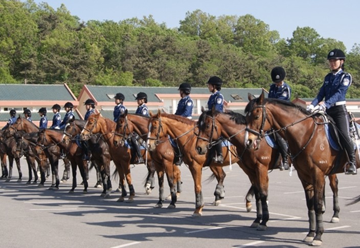 被譽為“華夏警花第一騎”大連市公安局巡警支隊女子騎警大隊組建于1994年12月,是國內(nèi)成立最早的一支女子騎警隊伍。女子騎警大隊現(xiàn)有民警44人,其中女民警38人,平均年齡27歲,裝備有英純血馬100匹。主要負責著繁華場所路段的巡邏、大型商貿(mào)文體活動的執(zhí)勤,首長外賓的禮儀警衛(wèi)、禮儀展示等任務。市政府撥專款建設(shè)了女騎警訓練基地,占地面積3萬平方米,其中有2500平方米的辦公大樓,周長415米的跑馬場和6000平方米的表演場。
