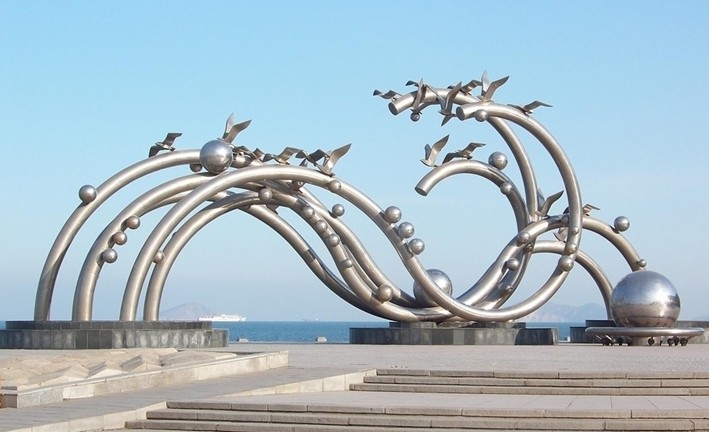 海之韻,一個(gè)富有詩意的名字,給予一個(gè)富于韻律的廣場, 加上自然的磅礴大氣和設(shè)計(jì)者的獨(dú)具匠心造就了大連東海岸上詩情畫意的海之韻廣場。它與星海廣場遙相呼應(yīng),像兩顆明珠照亮了大連的海岸線。版權(quán)所有山東聊城聊之旅國際旅行社有限公司,轉(zhuǎn)載必究!廣場面積3.8萬平方米,由13000平方米的鋪裝廣場、12000平方米的綠地和許多精致雕塑組成。該廣場的主角毫無疑問是雕塑,從西門進(jìn)入廣場,首先奪了你視線去的就是海之韻的主題雕塑,五根曲率不同的白鋼管為主體的雕塑,據(jù)說長19.9米,象征1999年9月是大連建市100周年;21只飛翔的海鷗象征飛向21世紀(jì);50個(gè)大小不同的球體即代表原子結(jié)構(gòu),又寓意建國50周年。在我看來五根波浪般的鋼管是波浪造就的五線譜,小鋼球是跳躍的浪花,大海在譜寫它獨(dú)有的樂章,海鷗在和樂起舞,這雕塑仿佛就是對蔚藍(lán)大海的抽象寫生。
