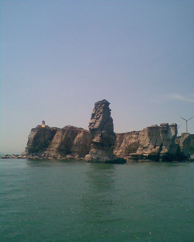 高69.7米,是一綿延幾百米的巨崖,由于千萬年來風(fēng)浪的侵蝕,石崖漸成了上凸下凹之勢,壁面犬牙交錯,石窟、石穴鱗次櫛比,是眾多水鳥棲息的樂園。