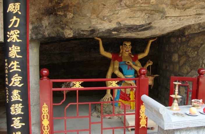 登上裝有石欄板的露臺(tái)仰觀勝水寺上院,一塊圓形巨石上現(xiàn)出南閣區(qū)檐。由西山門門洞拾級(jí)而上,眼前出現(xiàn)的是一個(gè)古樸的庭院。庭院被巨大的隱仙洞所半吞,殿內(nèi)供奉釋伽牟尼、文殊、普賢、觀音、地藏王各一尊,兩側(cè)為十八羅漢。正殿檐下原懸有歷代名家手書(shū)“一洞天”、“慈云永護(hù)”、“圣德參天”等匾額。版權(quán)所有山東聊城聊之旅國(guó)際旅行社有限公司,轉(zhuǎn)載必究!據(jù)碑文記載,勝水寺以水勝得名,這“勝水”當(dāng)出自正殿右側(cè)古井,可惜60年代初進(jìn)行國(guó)防施工時(shí)水線被截。西禪房附近有天然石鏡,光可鑒人。勝水寺上院左前方高達(dá)8米的南閣,紅墻黃瓦,格外醒目。登閣憑欄眺望,天海茫茫,層巒疊嶂。夏日山雨欲來(lái)或雨過(guò)初晴之時(shí),在此可見(jiàn)腳下云霧翻涌、飄飄欲仙之景,蔚為壯觀。