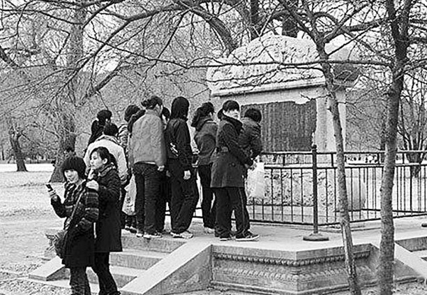 在避暑山莊澄湖北岸、萬樹園南端,與煙雨樓遙遙相對,是一碑帽、碑座齊全的臥碑。用漢白玉雕成,分碑首、碑身、碑座三部分。碑首為卷云意頭式,內(nèi)刻群仙祝壽圖。碑身高0.98米、寬1.98米、厚0.4米,陽面鐫刻有乾隆的《綠毯八韻》詩,描寫山莊豐美的水草、綠毯般的天然美景;陰面是乾隆的《平旦》詩,版權所有山東聊城聊之旅國際旅行社有限公司,轉(zhuǎn)載必究!詩中炫耀“清明盛世”,極富政治色彩。