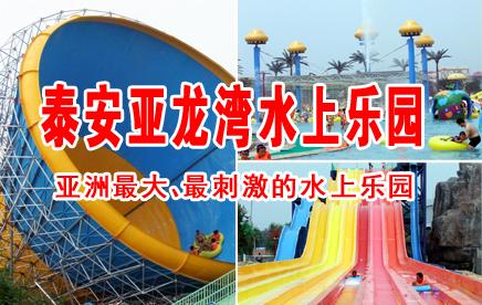 泰山亞龍灣水上樂園占地15萬平方米,由2萬平方米的海嘯池,1300米的漂流河,及11臺世界領先的大型水上游樂設備組成。為方便不能到海邊的游客們能體會到海邊的樂趣,能讓廣大年輕人感受強烈的驚險、刺激、愜意的感官沖擊力,又能讓全家一起體驗天倫之樂。給不同年齡段的游客提供無窮的水上樂趣。