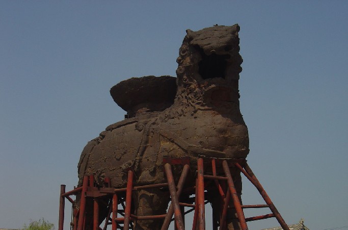 滄州鐵獅子位于滄州市政府駐地東南偏北16.5公里。坐落在東關村西0.5公里處。鐵獅身高5.78米,長5.34米,寬3.17米,體重約50噸。背負巨盆相傳是文殊菩薩蓮坐,獅身向南,頭向西南,兩左腳在前,兩右腳再后,呈前進狀,姿態(tài)雄偉,昂首闊步,徐徐如生鐵獅是我國大型的驚巧鑄鐵工藝。也是我國著名發(fā)源的古跡。距今已有一千多年的歷史,它充分的顯示出我國古代勞動人民的智慧和藝術(shù)才華。解放后鐵獅子受到了黨和政府的重視與保護,國務院首先把它列為全國第一批重點文物保護單位,并且對它進行各種的修繕。