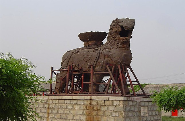 滄州鐵獅子位于滄州市政府駐地東南偏北16.5公里。坐落在東關村西0.5公里處。鐵獅身高5.78米,長5.34米,寬3.17米,體重約50噸。背負巨盆相傳是文殊菩薩蓮坐,獅身向南,頭向西南,兩左腳在前,兩右腳再后,呈前進狀,姿態(tài)雄偉,昂首闊步,徐徐如生鐵獅是我國大型的驚巧鑄鐵工藝。也是我國著名發(fā)源的古跡。距今已有一千多年的歷史,它充分的顯示出我國古代勞動人民的智慧和藝術(shù)才華。