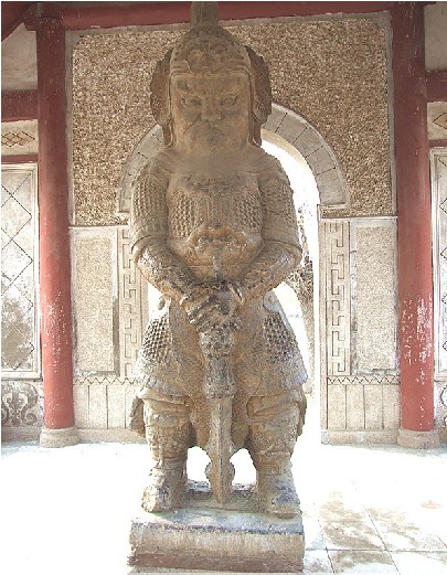南皮文保所院內(nèi),有一金剛亭。亭內(nèi)二金剛,青石雕刻,線條細(xì)膩,狀貌威武,是有名的石雕精品。 過去南皮城內(nèi)有一座名冠全縣的著名禪林——興化寺,它坐落在城內(nèi)東北角,位于現(xiàn)在土產(chǎn)公司家屬院一帶。此寺始建年代不詳,一說為北魏,一說為唐代,尚待進(jìn)一步考證。重修是在明朝弘治七年(1504)。版權(quán)所有山東聊城聊之旅國際旅行社有限公司,轉(zhuǎn)載必究!據(jù)說城東唐房里有個叫湯澄的人樂善好佛,曾游于興化寺,見敗垣殘壁一片荒涼,遂親自捐資,并向大戶募化,志在重修,數(shù)載始成。興化寺規(guī)模宏偉壯麗,成為南皮著名寺院。 興化寺以石金剛殿為山門。兩個金剛相向分立于殿之左右,下有石座相連,連座高一丈二尺,圍可合抱,雕刻玲瓏。金剛神色肅穆,身披鎧甲,狀似武將。左者胸前橫锏,雙手合十,右者雙手扶锏拄地。每像一只鼻孔。相傳為唐代所雕刻,建寺之初,從寺前水坑挖得,置于山門之內(nèi)。 寺內(nèi)主建筑為大慈閣,中曾羅列十八羅漢,正中為千手千眼銅佛,上懸“慈云永護(hù)”匾額,為清代狀元張之萬題撰。左懸“福佑臺山”匾,版權(quán)所有山東聊城聊之旅國際旅行社有限公司,轉(zhuǎn)載必究!右懸“登臨近日”匾,均未署名,據(jù)說是明人手筆。閣內(nèi)楹聯(lián)有二:一為清代道光時期南皮一縣令所題“我只有一片婆心,抱個孩兒與你;汝須行萬般好事,積些功德與他”。二為南皮孝廉張之京題撰:“金剛怒目,菩薩低眉,一鼻孔呼吸相通,證果在三生石上;閣建大悲,寺名興化,千眼中光明普照,法身現(xiàn)百尺樓頭。” 最上層神龕中,有菩薩一尊。上懸光緒十四年九月御制“道達(dá)人天”匾。閣前關(guān)帝廟,廟中有關(guān)羽銅像,綠銹斑駁,氣象凜然。