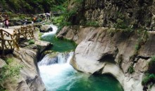 古人曾賦詩(shī)蒼龍峪:“蒼龍日暮還行兩,老樹(shù)春深更著花”。傳說(shuō)蒼龍峪歷年夏季水量大增,溪水奔流不息,老龍行雨所致,加之峪內(nèi)植被好,山色蒼茫,故名“蒼龍峪”。蒼龍峪由溝口至飛龍瀑,全長(zhǎng)約2公里,沿溝口向溝內(nèi)的溪流行走,石磴迂回, 步步登高,沿途有“浴鳳潭”、版權(quán)所有聊城聊之旅旅行社有限公司,轉(zhuǎn)載必究!“月波潭”等大小泉潭18處,有“涵云”、“浴露”、“危石泉聲”等石刻小品,可供游人攝影留念。沿溪流兩岸山勢(shì)崢嶸,草木繁茂,行至最高處,但見(jiàn)“飛龍瀑”一條白色匹練,自十幾米的高處飛瀉而下,水花四射,濤聲悅耳。