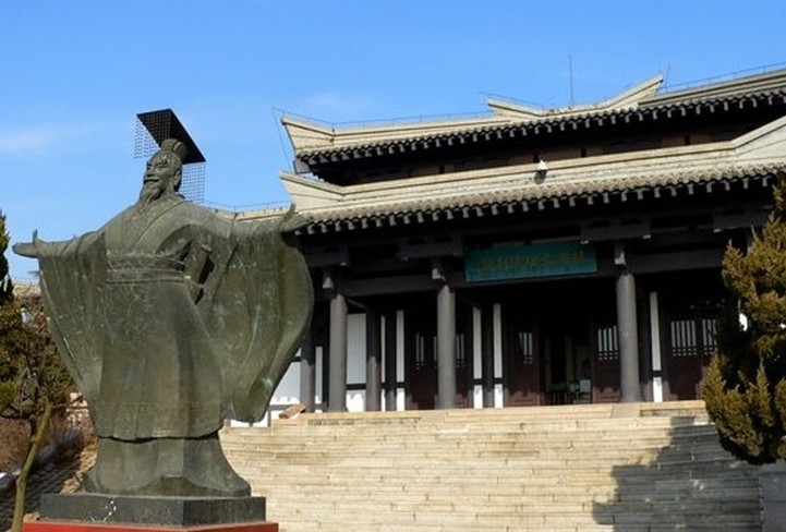 瑯琊文化陳列館位于瑯琊臺景區(qū)西門東側(cè)的山坡上,黑瓦紅柱,飛檐重疊,造型樸拙大氣,古意凝重,叫人一看便知是秦漢建筑風(fēng)格。陳列館前矗立著《千古一帝秦始皇》的青銅鑄像,展現(xiàn)了始皇帝登上瑯琊臺臨風(fēng)大樂的形象,引導(dǎo)人們一進(jìn)景區(qū)便走向瑯琊臺的歷史文化。陳列館由序廳、主展廳、回廊組成。序廳展覽的是《瑯琊臺圖》、四時主祠模型、古瑯琊地區(qū)大事年表和瑯琊歷史變遷圖等。版權(quán)所有山東聊城聊之旅國際旅行社有限公司,轉(zhuǎn)載必究!主展廳第一層陳列著從春秋至漢代巡游瑯琊的12位重要?dú)v史人物的塑像和反映他們在瑯琊臺活動的壁畫及地圖;第二層展出瑯琊臺出土的文物和社會文物。回廊的廊壁上嵌刻著歷代名人吟詠瑯琊風(fēng)物的詩詞文賦碑刻。