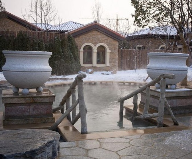 溫泉度假村的溫泉水溫度高達88℃,礦化度10.81克/升,其中含有醫(yī)療價值較高的氟、溴、鍶等30多種微量元素,對治療高血壓、冠心病、神經(jīng)衰弱、風(fēng)濕性關(guān)節(jié)炎、腰腿痛等骨質(zhì)性疾病有良好的輔助療效。