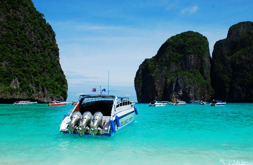 由各種途徑抵達(dá)普吉或甲米之后,終于可以乘船前往皮皮島了。如果游客在普吉的旅游代理店預(yù)定船票,可乘坐代理店的的小巴(Mini Bus)直達(dá)碼頭,普吉的詩(shī)里島碼頭(Ko Sirey)、馬堪灣碼頭(Makham Bay)、查龍灣碼頭(Chalong Bay)都有船只開往皮皮島,船費(fèi)250泰銖左右,航行時(shí)間約2小時(shí);在甲米市區(qū),有小巴和出租車前往海邊碼頭,可以在趙發(fā)碼頭(Jao Fa)搭船前往皮皮島,航行時(shí)間約1小時(shí)30分。