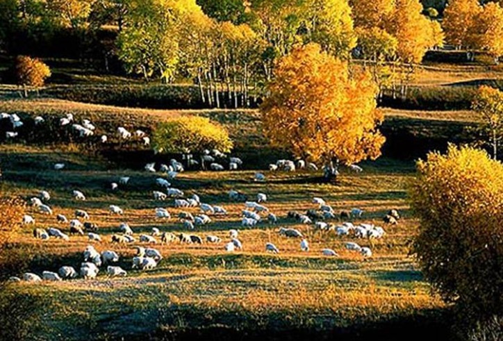 森林公園北、西部被廣褻的草原所環(huán)抱。綠茵如氈,坦蕩無際,風(fēng)吹草低)牛羊成群。極盯遠眺,藍天、白云與草原、羊群相融相連。間或傳來駿馬的嘶鳴和牧羊人的音哨,令人心曠神怡,浮想聯(lián)翩。