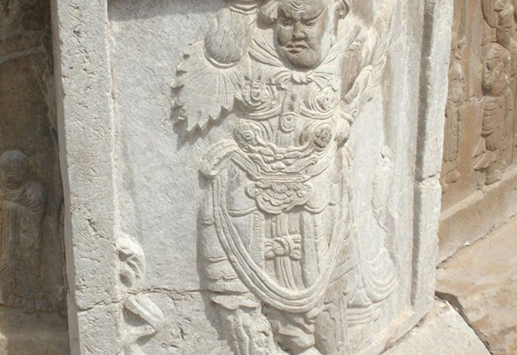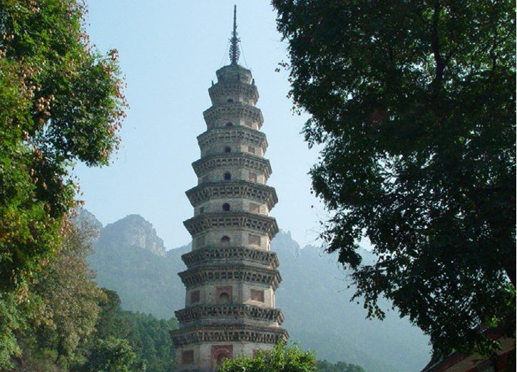 “辟支”出于佛教,音譯為“辟支迦佛陀”,略稱“辟支佛”,辟支塔,意即辟支佛塔。辟支塔為一座八角九層樓閣式磚塔,塔高55.7米,塔基為石筑八角,上有浮雕,鐫刻有古印度孔雀王朝阿育王皈依佛門等故事。塔身為青磚砌就,各層皆施腰檐,下三層為雙檐,二至四層檐下置平座。塔檐與塔徑自下而上逐層遞減,收分得體。塔內(nèi)一至四層設(shè)塔心柱,內(nèi)辟券洞,砌有臺階,可拾級而上,自第五層以上砌為實體,登塔須沿塔壁外腰檐左轉(zhuǎn)90度進(jìn)入上層門洞。塔身上置鐵質(zhì)塔剎,由覆缽露盤、相輪、寶蓋、圓光、仰月、寶珠組成,自寶蓋下垂八根鐵鏈,由第九層塔檐角上的八尊鐵質(zhì)金剛承接,在塔內(nèi)延續(xù)到地下,起避雷作用。辟支塔氣勢雄偉、造型美觀、結(jié)構(gòu)復(fù)雜、比例適當(dāng),呈典型的宋代風(fēng)格,為靈巖寺標(biāo)志性建筑。宋代文學(xué)家曾鞏有詩贊曰“法定禪房臨峭谷,辟支靈塔冠層巒”。