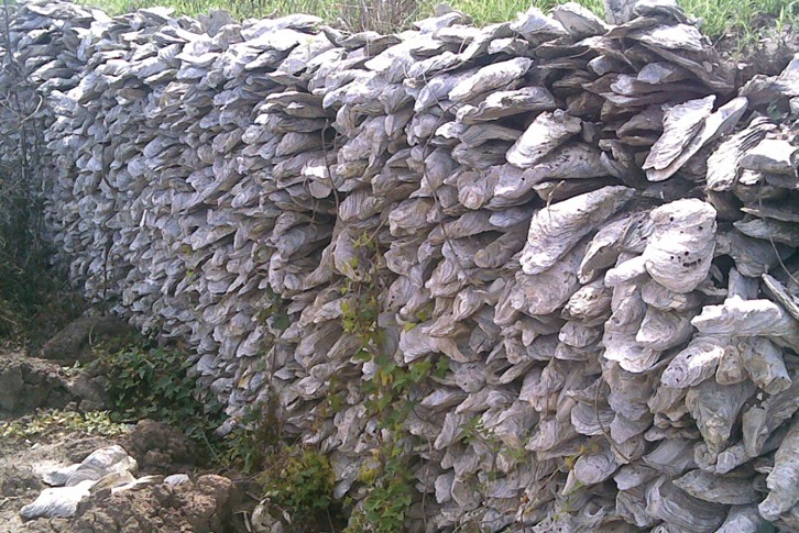 牡蠣灘分布在寶坻縣南部和寧河縣中部、東部地區(qū),由海灣環(huán)境下的長重蠣和近江重蠣的尸積群和埋葬群組成,為距今5800~2200年前的產(chǎn)物。牡蠣生長在潮間帶下部和潮下帶水面下,故將牡蠣層的頂面作為判定當(dāng)時(shí)海平面的標(biāo)志之一。寧河縣的牡蠣灘呈帶狀東西向分布,表明當(dāng)時(shí)潮汐方向?yàn)槟媳毕颍c現(xiàn)代相近。面積最大的牡蠣灘在寧河縣西部東棘坨鄉(xiāng)史莊子到姜莊子間的河道中,東西長1000米,南北寬730米,面積73公頃。厚度最大的牡蠣灘位于寧河縣東部靠京山鐵路的裴莊,牡蠣層厚度大于5米。牡蠣灘中牡蠣殼占90%以上,牡蠣殼個(gè)體直徑最大者50厘米,最小者幾厘米,與生長速度有關(guān)。尸積群以坐姿為主,埋葬群以臥姿、瓣殼為特征,反映當(dāng)時(shí)海灣比較寧靜,海水清澈。2200年前海平面比現(xiàn)今高出1米左右。