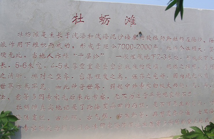 蠣灘形成于距今7000-2000年,是世界上迄今發(fā)現(xiàn)的規(guī)模最大、分布最廣、序列最清晰的古海岸遺跡。分布在寶坻縣南部和寧河縣中部、東部地區(qū)。它是由牡蠣殼堆積而成的,從中可以反映出古海灣的變遷。天津的牡蠣灘,無論從面積上,還是從厚度上,都是世所罕見的,如寧河縣西部東棘坨鄉(xiāng)史莊子到姜莊子間的河道,以及寧河縣東部靠近京山鐵路的裴莊,這兩地牡蠣灘的規(guī)模、剖面層厚度、清晰度、殼體長度世所罕見,對海洋生態(tài)及海陸變遷等學(xué)科的研究具有寶貴的價(jià)值。