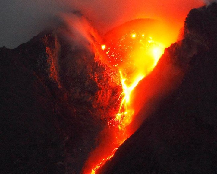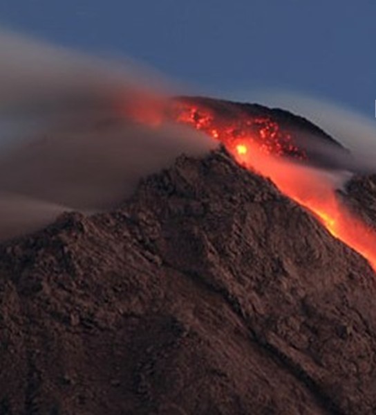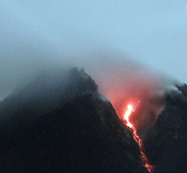 默拉皮火山位于印度尼西亞爪哇島的中部。在日惹東北32公里,海拔2911米,默拉皮意為“不滅之火”,是一個(gè)錐形火山,也是印度尼西亞活動(dòng)性最強(qiáng)的火山,1006年首次爆發(fā),山頂粉碎,毀滅了中爪島的一個(gè)王國(guó)。埋沒(méi)世界七大奇觀之一的婆羅浮屠佛塔。1548年以來(lái)又噴發(fā)68次,平均兩三年噴發(fā)一次,每次都有傷亡。火山距離日惹市相當(dāng)近,山麓居住著幾千人,有的村莊在海拔1700米的高處,當(dāng)?shù)鼐用褡裥幸环N古老的儀式,每年都在火山口旁邊牲口供祭,以期安撫默拉皮山的神靈,但死亡依然頻頻降臨。由于其威脅人類居住地的安全,被國(guó)際地球化學(xué)和火山學(xué)協(xié)會(huì)列為應(yīng)當(dāng)加強(qiáng)監(jiān)督與研究的全球16座火山之一。