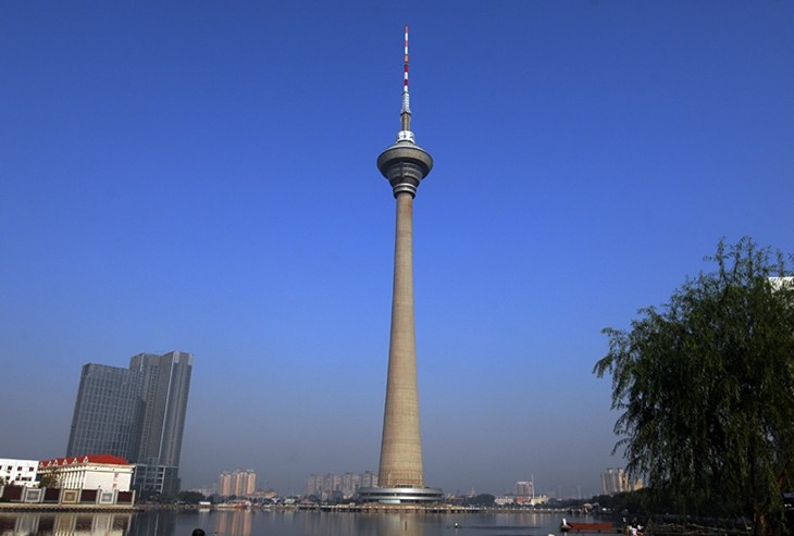 天津廣播電視塔簡稱“天塔”,位于天津西南,四周是 210,000 平方米的湖。“天塔”以水上天塔而著稱。“天塔”高為 415 米。在塔的 248 米和 278 米之間是一個七層的飛碟型的建筑。飛碟結(jié)構(gòu)的總面積為 4,500 平方米。除了廣播間和電力間(260m-378m)之外,還有三層覆蓋了大約 1,300 平方米的面積。第一層中是仙客來餐廳(248 米),這里提供中餐、宴會服務(wù)和卡拉OK 包間。可同時容納 100 人。
