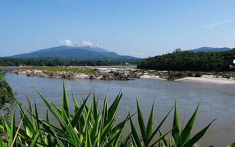 敏宋北距密支那43公里,又叫“三江口”,是恩梅開江和邁立開江的匯合處。敏宋是伊江的神來(lái)之筆,是克欽邦的精典景點(diǎn)。站在碩大的白體金塔前的草亭內(nèi),江風(fēng)習(xí)習(xí),俯瞰壯麗的三江口,頓覺(jué)胸襟開闊,思緒萬(wàn)千。東邊那條叫恩梅開江,西邊這條就是邁立開江,兩江之間礁峭石奇,江水奔涌,在巨大的魚嘴石處交匯,合二為一,浩蕩南行,氣勢(shì)如虹。恩梅開江發(fā)源于西藏察隅縣境內(nèi),藏語(yǔ)叫“美爾東曲”;南下入云南怒江州貢山縣境后稱獨(dú)龍江;進(jìn)入克欽邦后更名為恩梅開江。邁立開江源自中緬邊境的大雪山南麓,其東邊是江心坡,西邊是枯門嶺。這兩條江的性格一陰一陽(yáng),一剛一柔,陰陽(yáng)結(jié)合后,便成了緬甸的“天惠