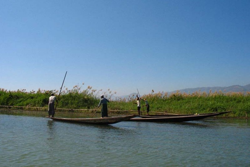 茵萊湖一帶的一萬多戶居民,大部分屬于茵達(dá)族,散居于湖邊的180多個(gè)村落中。他們主要以捕魚為主,勤勞樸實(shí),殷實(shí)富足,熱情好客。也有相當(dāng)多的人在浮島上從事蔬菜種植或養(yǎng)蠶、紡織、打鐵、制作金銀手飾等。