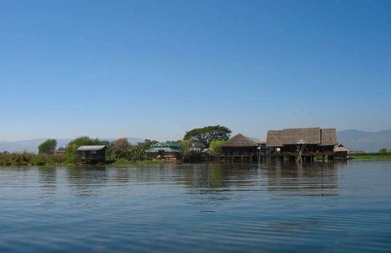 茵萊湖位于緬甸北部撣邦高原的良瑞盆地上,為緬甸第二大湖,緬甸著名的游覽避暑勝地。湖面海拔970多米,南北長14.5公里,東西寬6.44公里,三面環(huán)山,來自東、北、西三面的溪流注入湖中,向南匯入薩爾溫江。湖水清澈,陽光直射湖底。湖中生活著20多種魚,有豐富的水產(chǎn)資源。