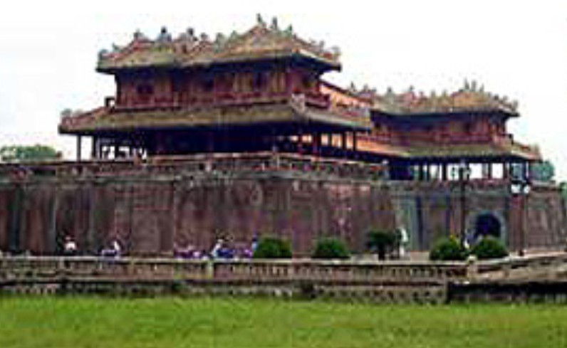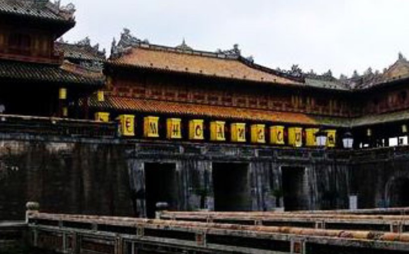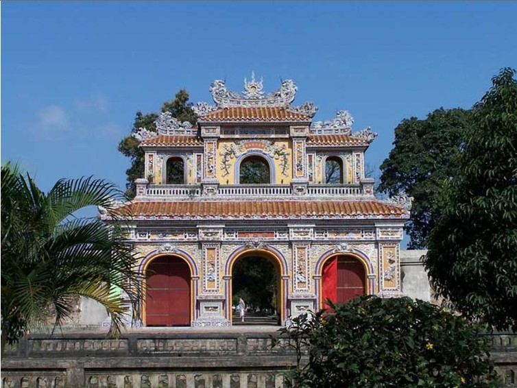 越南順化故宮正門。規(guī)模比中國(guó)北京故宮的午門小,但其式樣基本一樣。平面呈冂形,下有高大的磚石墩臺(tái),臺(tái)正面圍以垛墻。墩臺(tái)有5門,正中門高5.32米,寬3.28米,門正中上方有“午門”兩個(gè)大字。當(dāng)初字外包金,1943年12月10日包金被竊。墩臺(tái)上建樓5座,名五鳳樓,樓分兩層,氣勢(shì)巍峨。下層正中是“御座”。上層為各宮人觀禮之所。當(dāng)時(shí),午門只在慶典節(jié)日開(kāi)放。午門也是阮氏王朝被埋葬的見(jiàn)證,1945年8月30日阮朝末代皇帝被迫在此正式宣布遜位,并把金印和寶劍交給越南臨時(shí)政府代表團(tuán)。午門建于阮朝明命十四年(公元1833年),啟定三年(1921年)重修。抗戰(zhàn)期間遭炮火破壞,現(xiàn)已修復(fù)。以前,阮朝嘉隆初年曾在午門現(xiàn)址建有南闕臺(tái)。