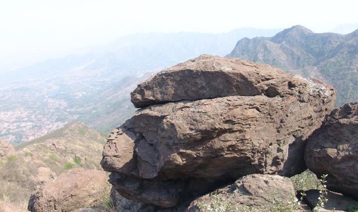 摩訶山峻峰雄峙,大壑深澗,巨石危巖,奇險(xiǎn)莫測(cè)。頂峰聳入云中,舊曾建有塔和禪院,皆失無(wú)考,僅存遺址石墻,尚能勾起人們對(duì)其原貌的想象。據(jù)傳山頂寺中,原有一小和尚,腦力遲鈍,數(shù)日僅學(xué)“摩訶”二字。冬天,和尚們下山募化,僅留其守寺,不留食物,待月余歸,但見(jiàn)小和尚仍面色紅潤(rùn),問(wèn)其,則曰:口不絕吟“摩訶”,饑則煮石,食之甘美。“摩訶”山名即由此而得。