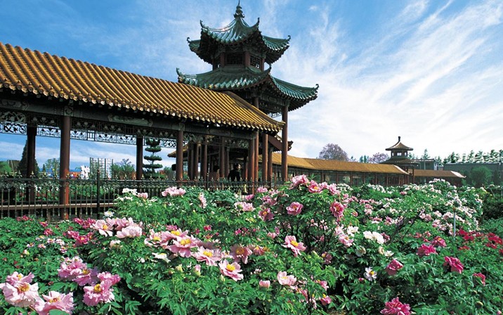 該園以牡丹名貴品種繁多而被譽為“牡丹珍品園”。黃、紅、蘭、白、黑、綠、紫、粉、復(fù)色九大色系,達520余種。自己培育的“賽雪塔”、“春紅嬌艷”、“青龍鎮(zhèn)寶”、“似品紅”、“墨池爭輝”、“綠幕隱玉”等;珍惜傳統(tǒng)品種“姚黃”、“蘭寶石”、“梨花雪”、“掌花案”等,先后獲國家科技成果《優(yōu)秀獎》、《新品種獎》、《優(yōu)質(zhì)獎》27項。