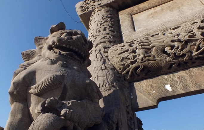 百獅坊不但工藝高超,氣勢(shì)雄偉,而且關(guān)于此坊的傳說(shuō),也頗為優(yōu)美。百獅坊乃單縣富戶張氏所修。高14米,寬9米,四柱五樓式, 每個(gè)柱梁都有數(shù)噸重,那時(shí)沒有吊車等提重工具。石工們正為無(wú)法將石料提送到十幾米的高空發(fā)愁,版權(quán)所有山東聊城聊之旅國(guó)際旅行社有限公司,轉(zhuǎn)載必究!此時(shí) 有一拾糞的老者過此觀望。有一石工問此老者:“老大爺,你有好法將這大石料送上空嗎?”老者含笑答曰:“我已是土埋半截的人了,哪有什么辦法?”說(shuō)罷,哈哈大笑而去。領(lǐng)工者見此人不凡,想再追問,此人再也找不到了,忽然悟到,用屯土的方法將巨石筑上去,修多高,土堆多高。解決了吊送的問題。修牌坊耗資巨大,工藝越來(lái)越細(xì),修到最后, 雕刻下的每?jī)墒劭蓳Q一兩白銀,修到這個(gè)程度,張氏家產(chǎn)耗盡。百獅坊落成,張氏坊主設(shè)宴慶賀。坊主滿心歡喜,以為此坊技藝已登峰造極,無(wú)以復(fù)加。坊主親為石匠之尊敬酒,道:“諸君奇藝,勞苦功高,張某不勝歡慰之至,可否再錦上添花。”石工老師微笑曰:“藝海無(wú)邊。”坊主不寒而栗,驚落手中酒盎,摔得粉碎。張坊主唯恐再有富戶修坊超過百獅坊,暗在酒中下了毒藥,可惜一代巧匠一命嗚呼。