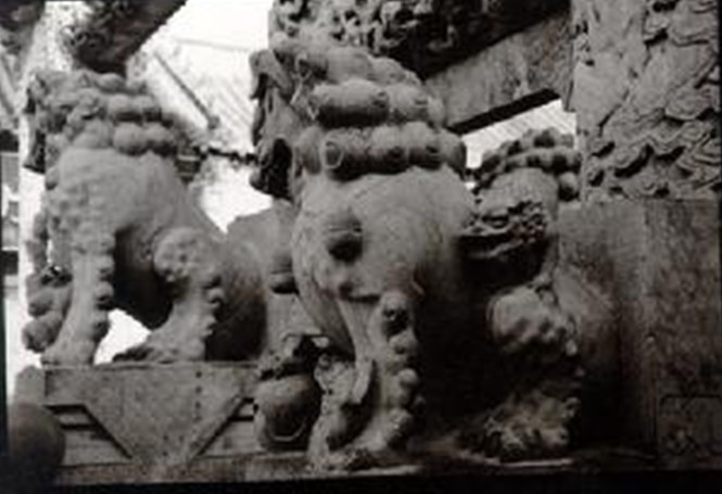百獅坊俗稱張家牌坊。位于牌坊街中段。1778年為贈(zèng)文林郎張蒲妻朱氏而建,全石結(jié)構(gòu),高14米,寬9米,四柱三間五樓式,正間單檐、次間重檐、歇山頂、 斗拱交錯(cuò),戧角起蹺,通體雕刻。正間樓檐下六朵斗拱,次間上下檐下各三朵斗拱。全枋上下間架有致,搭配均衡,雕刻的獅子、云龍、牡丹、吻獸、象尊等,均惟妙惟肖,栩栩如生,剛?cè)嵯酀?jì),神態(tài)協(xié)調(diào)。