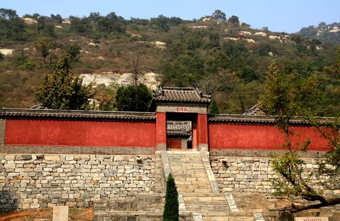 九女堂山東面,是一座赫紅色的山巒,名叫“紅山”,山中泉澗縱橫,林木茂盛,風景格外幽美。建國初期的五十年代,紅山子村就是國務(wù)院命名的山區(qū)綠化先進單位。早在古代,這里就被當成風水寶地,明代魯王宗室安丘王及其子孫的墓陵就選建在這里。這片陵墓群處在四面環(huán)山的山坳里,共三座大墓,呈鼎足形排列。其中兩座封土完整。最大的一座為園丘形,封土直徑達80米;另外一座封土東西寬24米,南北長40米,斜面坡高20米。還有一座已為平地,村民在其上耕地下陷,發(fā)現(xiàn)石砌墓室,墓中有一墓志銘,上蓋銘文題為:“魯府安丘王鎮(zhèn)國將軍壙志銘”,為篆書淺刻。銘文記載,墓主人是明太祖朱元璋的六世孫、安丘王朱陽釜的第三子、鎮(zhèn)國將軍朱當沿。據(jù)《兗州府志•天潢志》記載,朱元璋封他的第九個皇子朱檀為魯王,于兗州立國,死后謚為“荒王”;第二代魯王是靖王朱肇煇。宣德二年(1427年),靖王封其第一庶長子朱泰坾為安丘王,謚號“靖恭”。朱泰坾之子朱陽釜為第二代安丘王,謚號“莊簡”,朱當沿就是安丘莊簡王朱陽釜的第三子。成化二年(1466年)六月受封為鎮(zhèn)國將軍,死后歸葬于兗州魯府東北的屬地九仙山中。其余兩座墓冢因未發(fā)掘,尚不知墓主人是誰。1977年12月23日,墓群被定為“明安丘王墓群”,列為山東省重點文物保護單位。