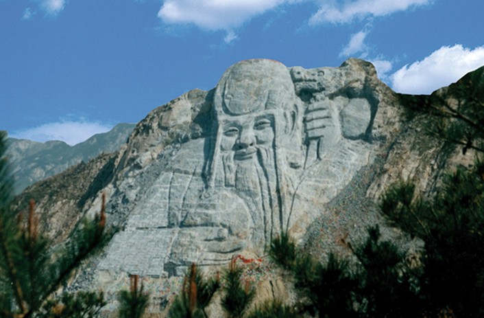 位于龜蒙頂西北側(cè),從龜蒙頂沿臺(tái)階步游路可直達(dá)拜壽臺(tái),由此即可看到對(duì)面山崖的壽星巨雕。壽星巨雕是利用天然裸巖依山雕刻,由中央美術(shù)學(xué)院教授設(shè)計(jì),采用明朝末年定型的壽星形象,雕像面南,為半身像, 高218 米, 頭部高108米,大腦門,白須飄逸長(zhǎng)過腰際,一手拄鳩杖,一手托仙桃,慈眉善目, 笑逐顏開。雕像通過藝術(shù)上的虛幻處理,近看親切安詳,遠(yuǎn)看氣勢(shì)雄偉,給人以神秘之感,為養(yǎng)生長(zhǎng)壽勝地蒙山旅游的標(biāo)志性景點(diǎn),其規(guī)模之大為世界之最。