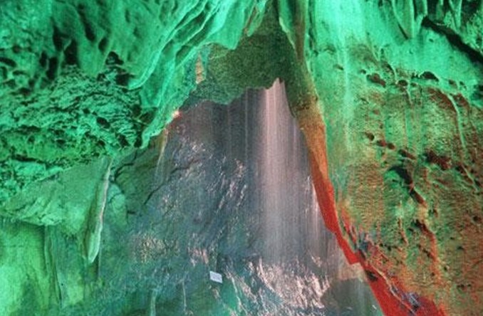 然而,進(jìn)入洞中的人們卻發(fā)出了一長串慨嘆。洞中博大精深。似巨龍扭轉(zhuǎn)的洞體,氣貫長虹而又時(shí)現(xiàn)玲瓏和雅致。地面已由人工鋪筑了水泥,兩側(cè)護(hù)欄纏繞,洞中小溪潺潺流淌。空中乳石滴垂,有的如筍向上飛穿,也有的似瀑流空垂高掛。洞頂如魚脊背,漸慢成一線,有的如牛角斜出,旋轉(zhuǎn)成小洞,稱為“天眼”。有的地方空中又搭懸橋,出現(xiàn)洞中懸洞。主洞寬處可容奔卡車,側(cè)洞、支洞的狹窄處游人只能俯身低眉,甚至要匍匐前行。洞中有穹廬似的頂端如螺旋轉(zhuǎn),向上越旋越細(xì),直刺高空,似歐洲的古建筑潛于地下。