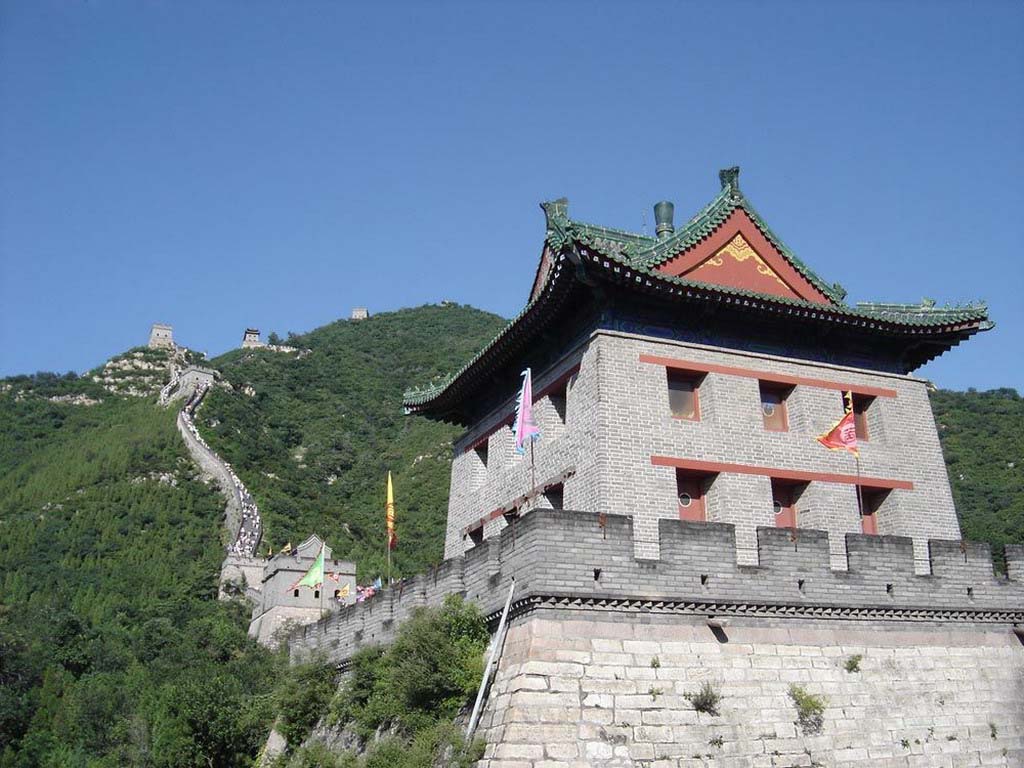 居庸關(guān)長城建筑在一條長達15公里的山谷中間,兩旁山巒重疊,樹木蔥郁,山花爛漫,景色瑰麗,遠在800年前的金代,就被列為燕京八景之一,稱為“居庸疊翠”。居庸關(guān)是從北面進入北京的門戶,有“一夫當(dāng)關(guān),萬夫莫開”的氣勢。居庸關(guān)的中心,現(xiàn)在還保存著一個雕刻精美的漢白玉石臺,叫“云臺”。在元朝時,這臺上建有三座石塔,于元末明初被毀。三塔毀后,在此臺上又建一院,名“泰安寺”,此寺于清康熙年間被火焚毀,只剩下這個基座------云臺。云臺的券門內(nèi),石壁上雕刻有四大天王 像,刻工精巧,姿態(tài)傳神;還有梵文、藏文、蒙文、維吾爾文、西夏文、漢文六種文字刻成的佛經(jīng)。去八達嶺長城游覽一是從市內(nèi)乘游覽專車前往,費用高一些,但比較舒服,并可同時游覽十三陵。從北京去八達嶺的公路,經(jīng)修整后,平坦寬闊。也可以坐火車前往,早7時40分發(fā)車,車行2小時多。八達嶺游人鼎盛,平均一天游客約萬余人。